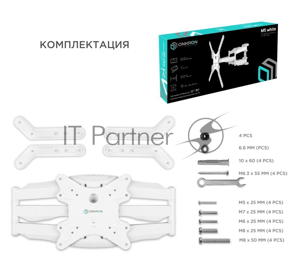 СохранитьКронштейн для телевизора 37"-70" ONKRON M5,наклонно-поворотный, белый интересное: