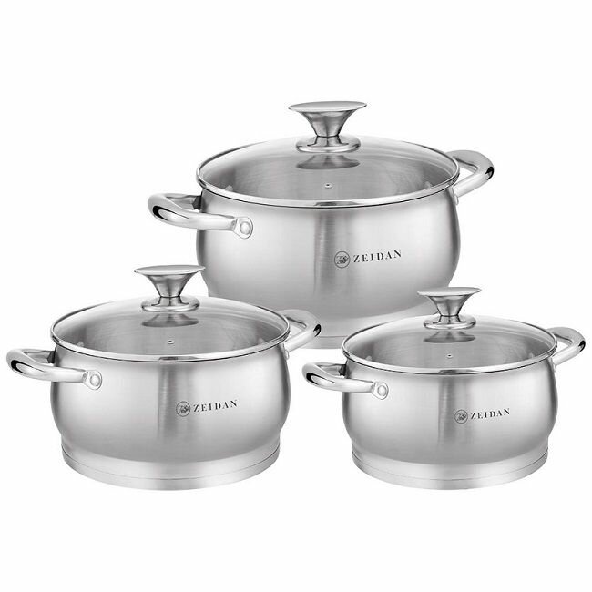 Набор посуды для приготовления из нержавеющей стали Zeidan кастрюли 2.1, 3 и 4 литра с крышками для газовых, электрических и индукционных плит