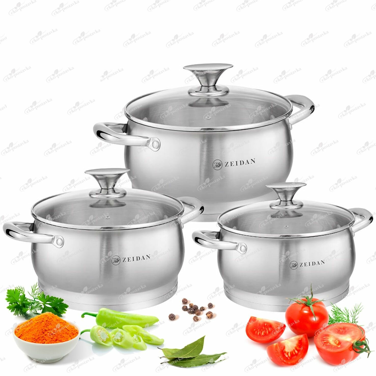 Набор посуды для приготовления из нержавеющей стали Zeidan кастрюли с крышками для газовых электрических и индукционных плит 2, 3 и 4 литра