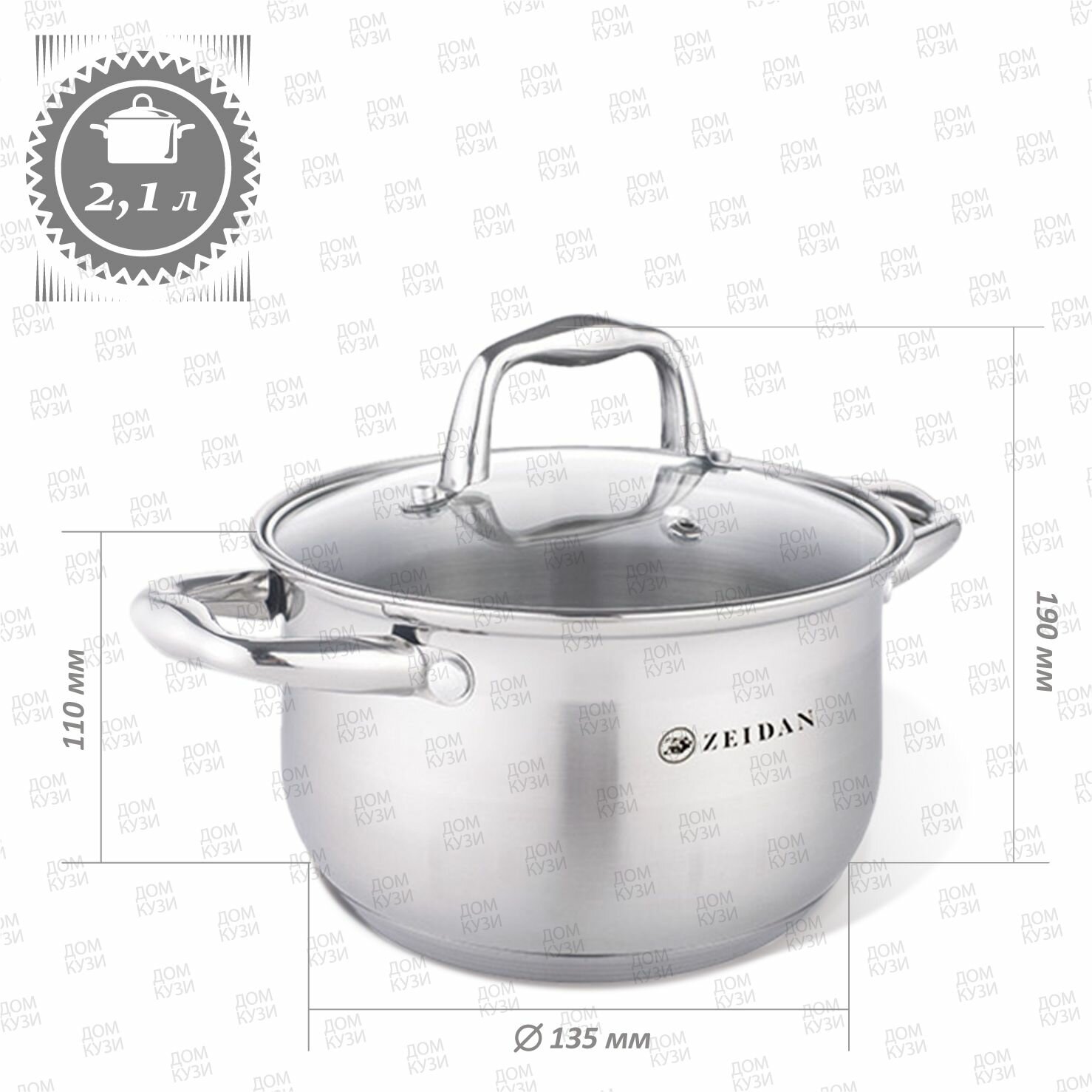 Набор посуды для приготовления из нержавеющей стали Zeidan кастрюли с крышками для газовых электрических и индукционных плит 2,1, 3 и 4 литра