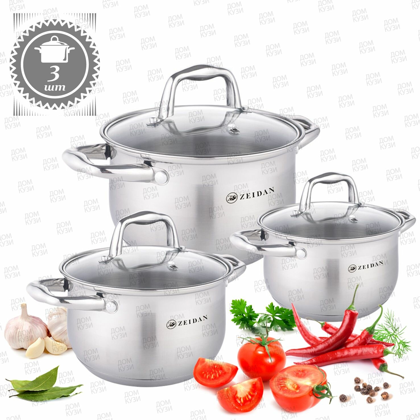 Купить Набор посуды для приготовления из нержавеющей стали Zeidan кастрюли 2, 3 и 4 литра с крышками для газовых, электрических и индукционных плит