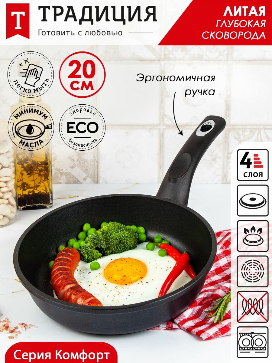 Сковорода антипригарная литая 20 см Комфорт ТМ Традиция готовить с любовью интересное: