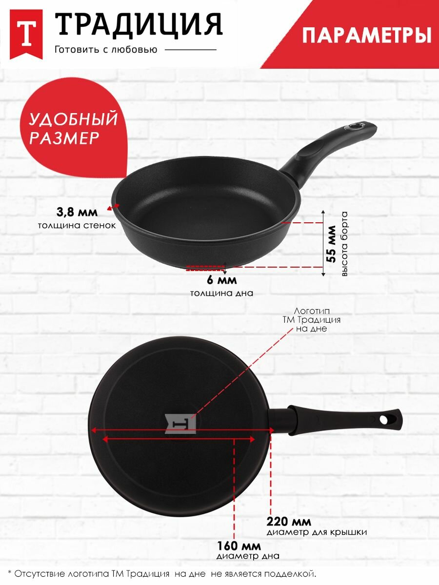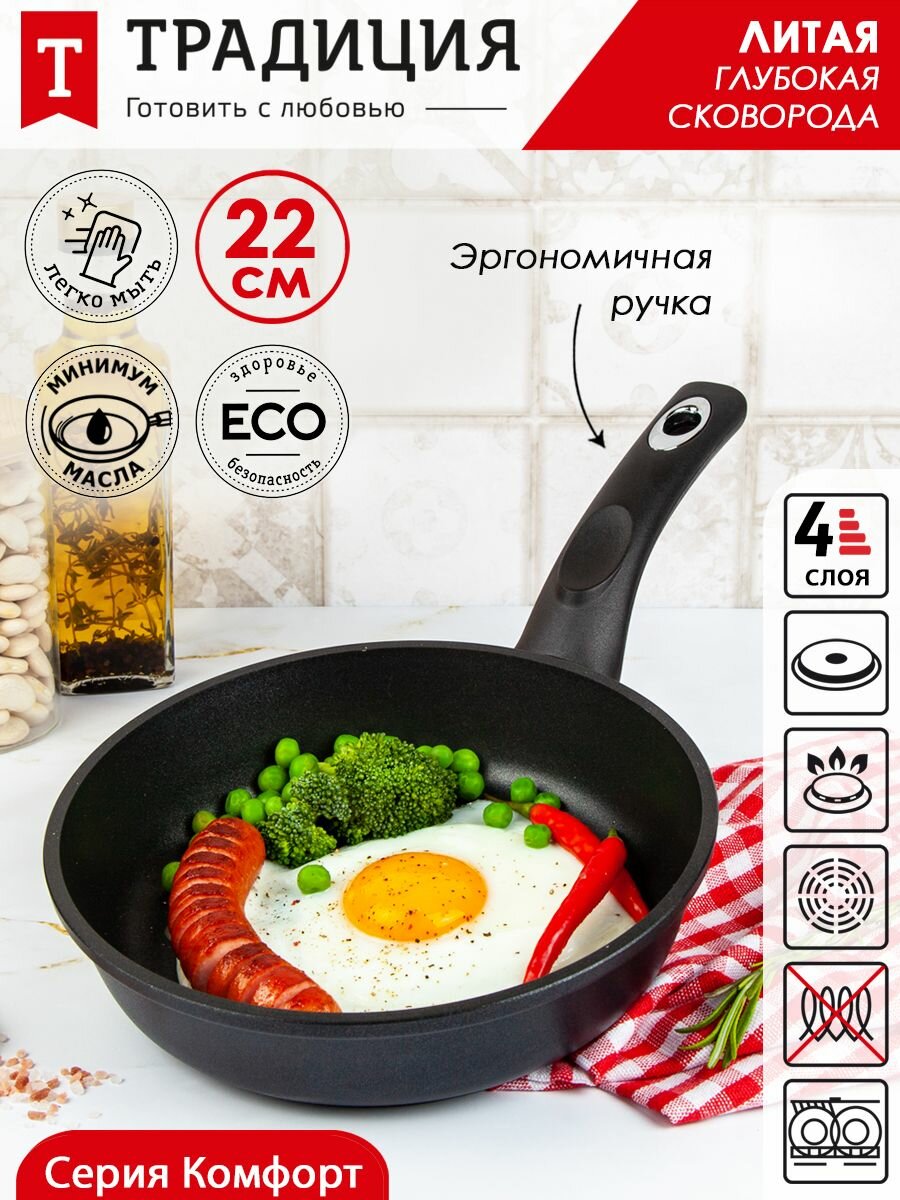 Сковорода антипригарная литая 22 см Комфорт ТМ Традиция готовить с любовью интересное: