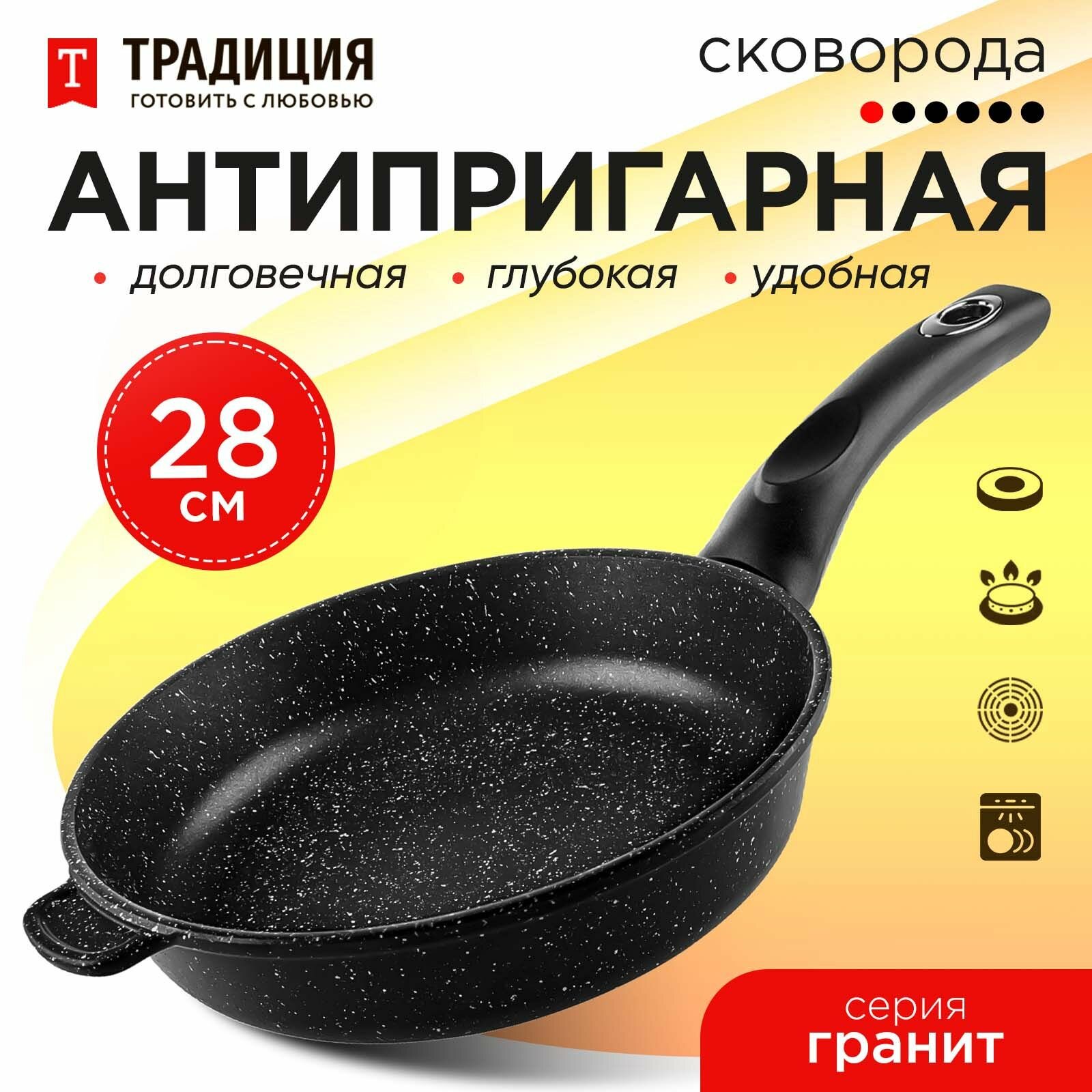 Сковорода ТГ2281 литая 28 см гранит Традиция