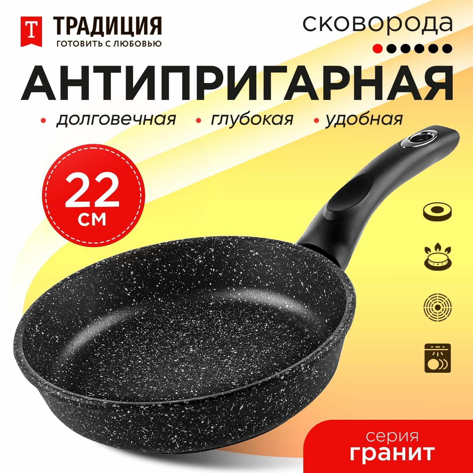 Сковорода Традиция Гранит, диаметр 22 см, 22х22 см
