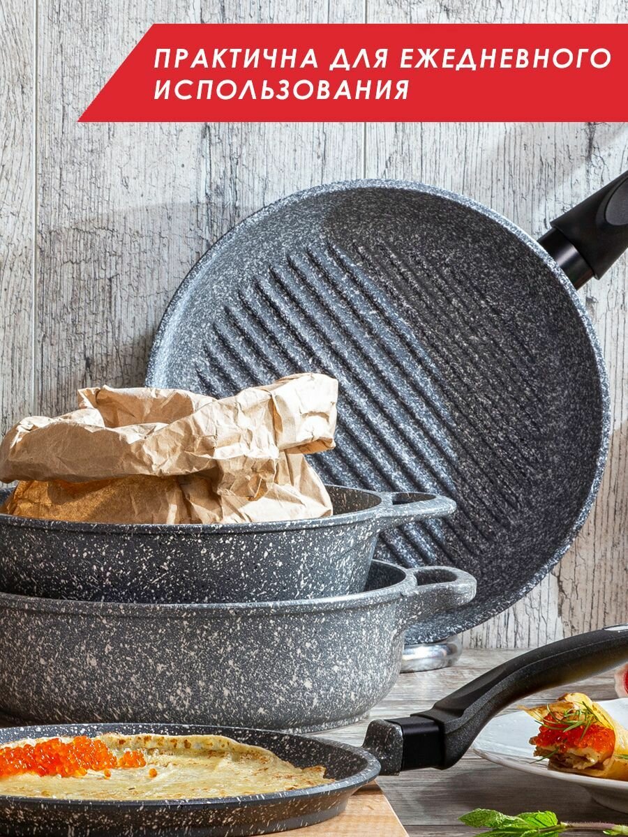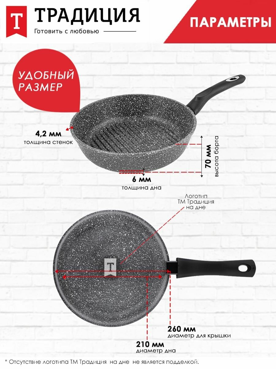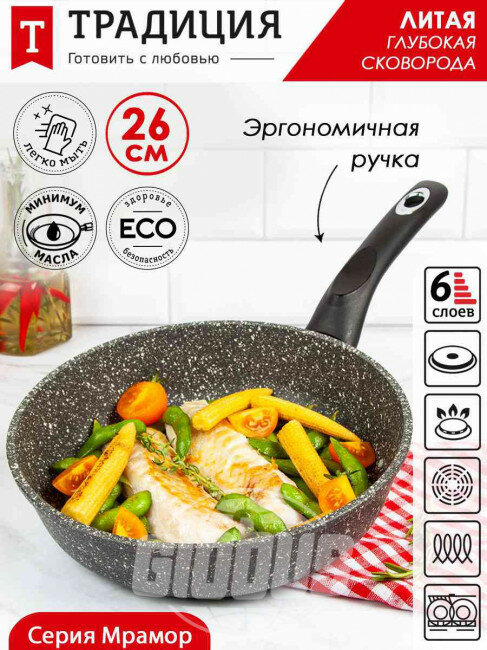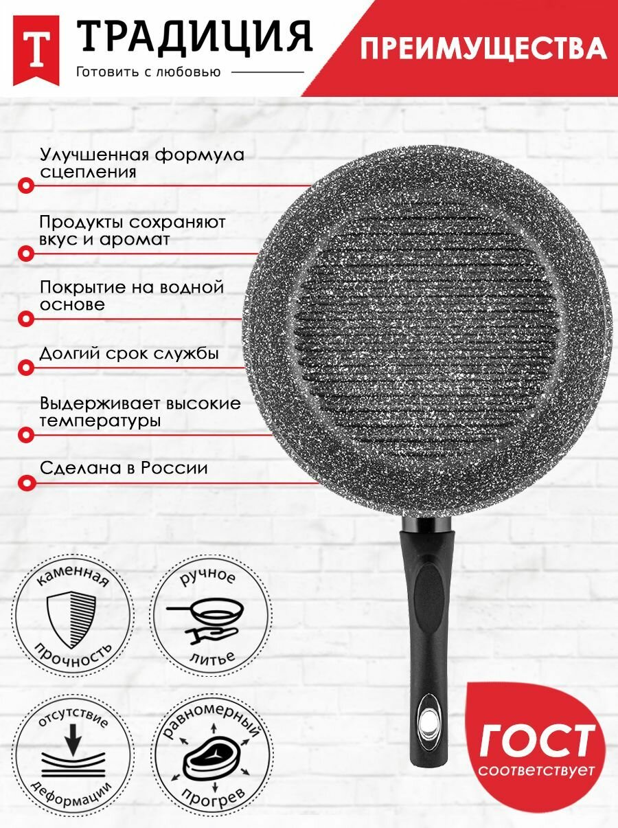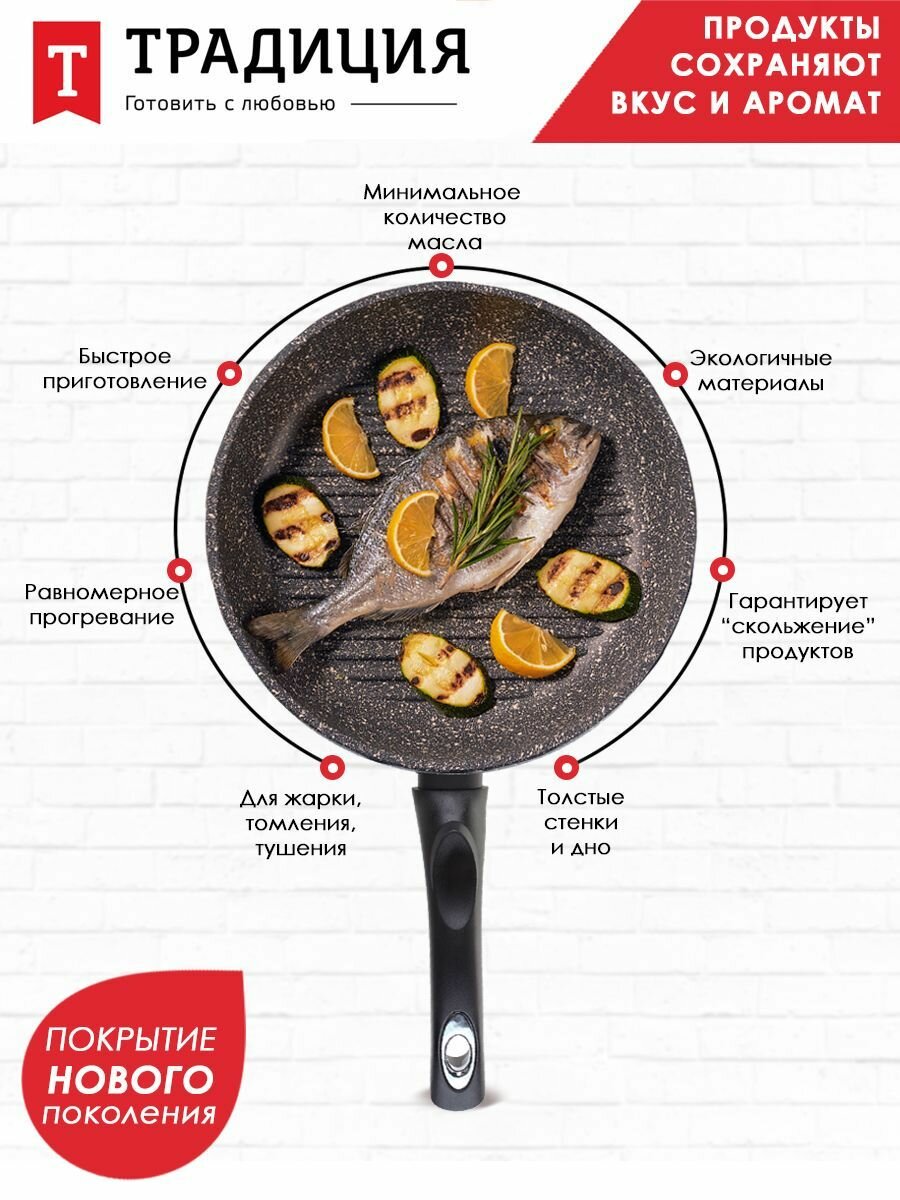 СохранитьСковорода-гриль антипригарная литая 26см Мрамор ТМ Традиция готовить с любовью интересное: