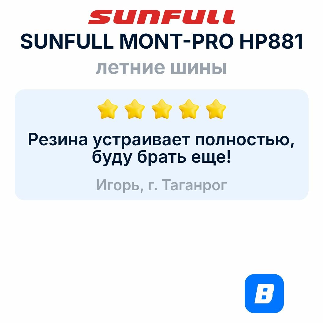 Ниже Вы можете прочитать отзывы на Летняя шина Sunfull MONT-PRO HP881 275/45 R20 110V, ознакомится с подробными характеристиками, посмотреть интересные обзоры и фотографии на Летняя шина Sunfull MONT-PRO HP881 275/45 R20 110V.