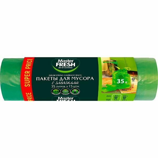 Пакеты для мусора 35л/15шт (с завязк.) Master FRESH MFGB35-15R