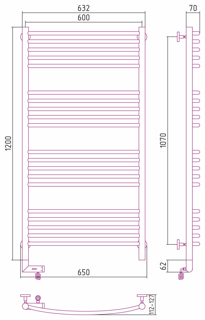 Электрический полотенцесушитель Сунержа Богема 2.0 выгнутая 1200x600 лтэн без покрытия