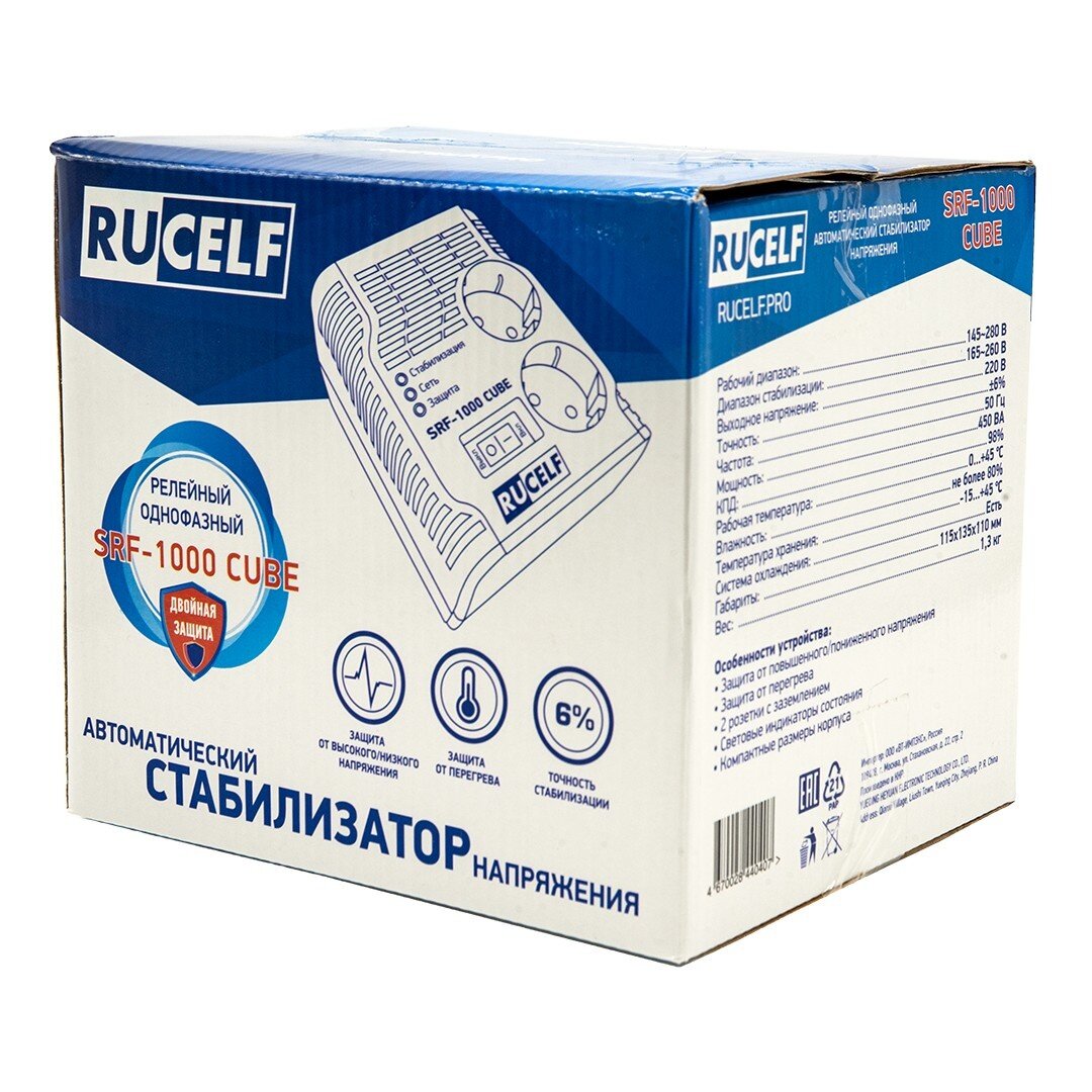 Стабилизатор напряжения Rucelf SRF-1000 CUBE однофазный белый интересное: