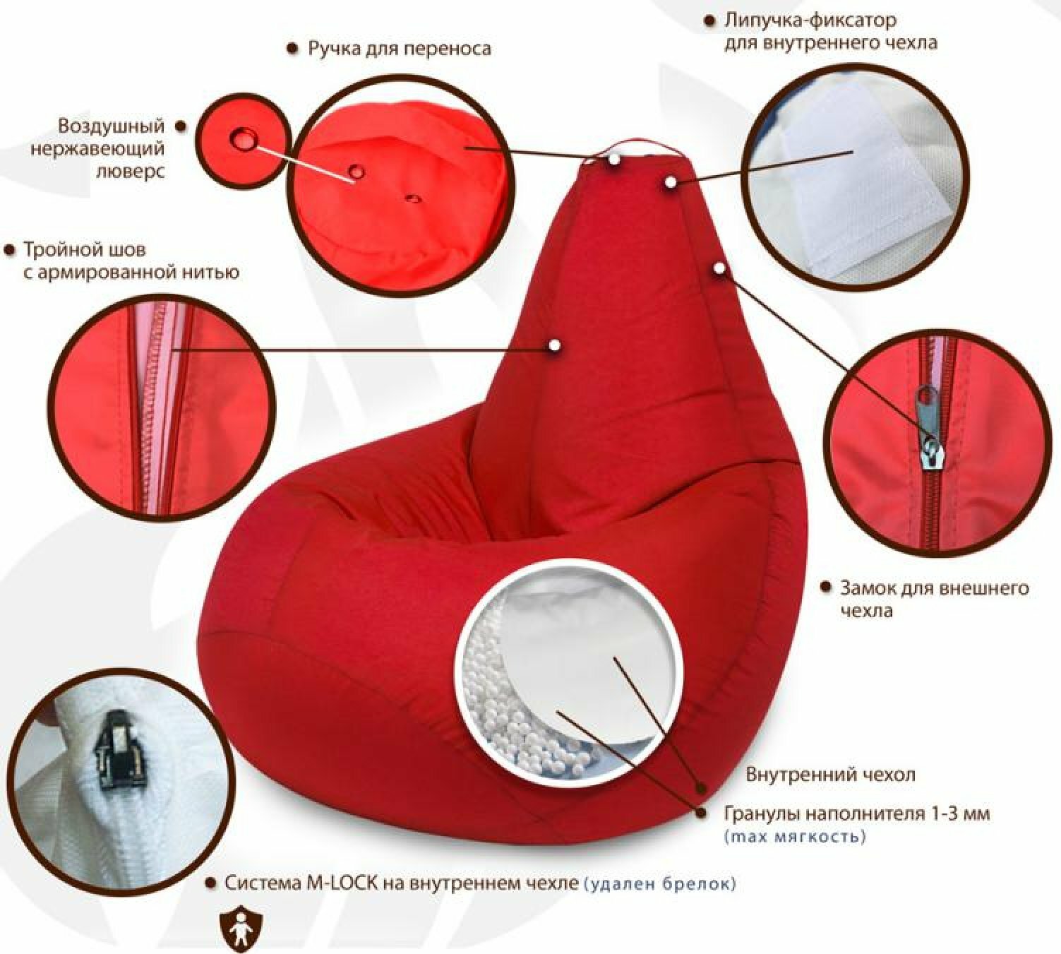 MyPuff кресло-мешок Груша, размер L-Компакт, оксфорд, красный