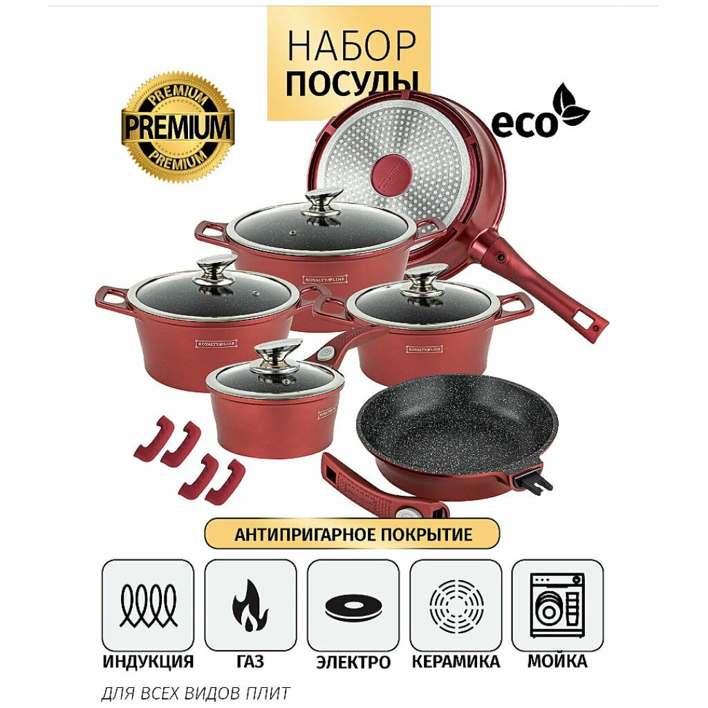Набор кастрюль с мраморным покрытием Royalty Line RL-ES2014M Burgundy, 14 предметов (OL) интересное: