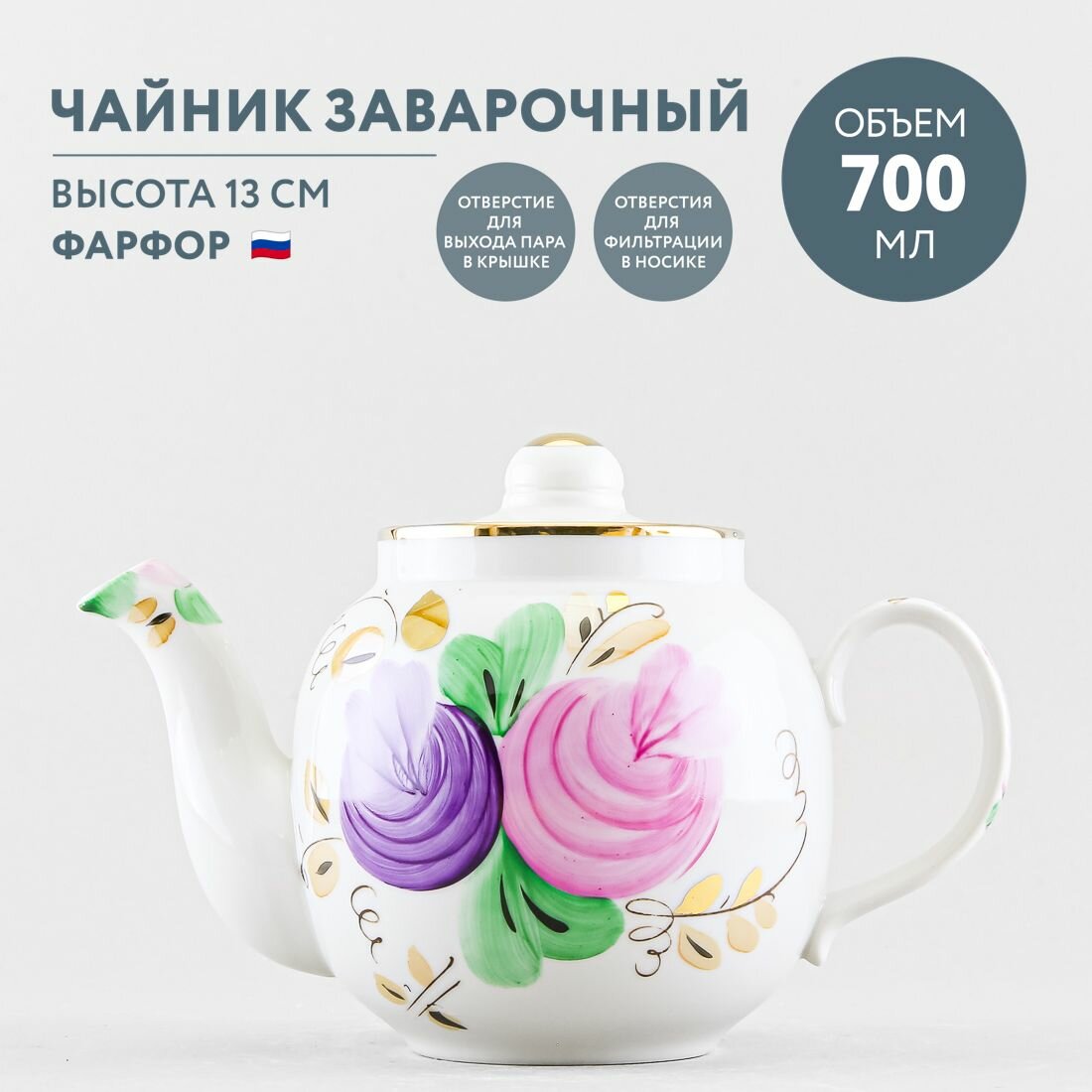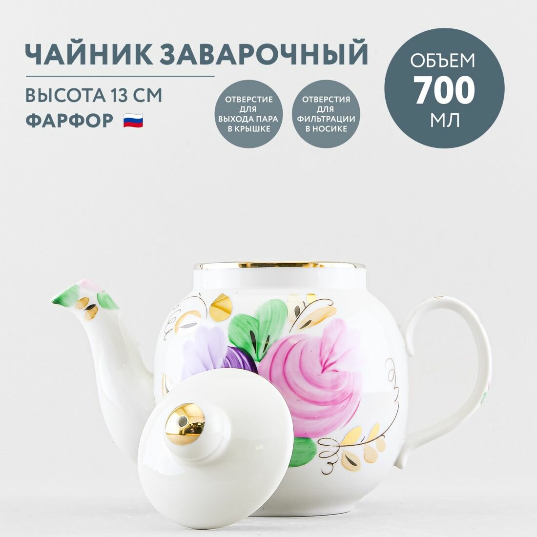 Чайник заварочный фарфоровый 700 мл Дулевский фарфор Отводка золотом