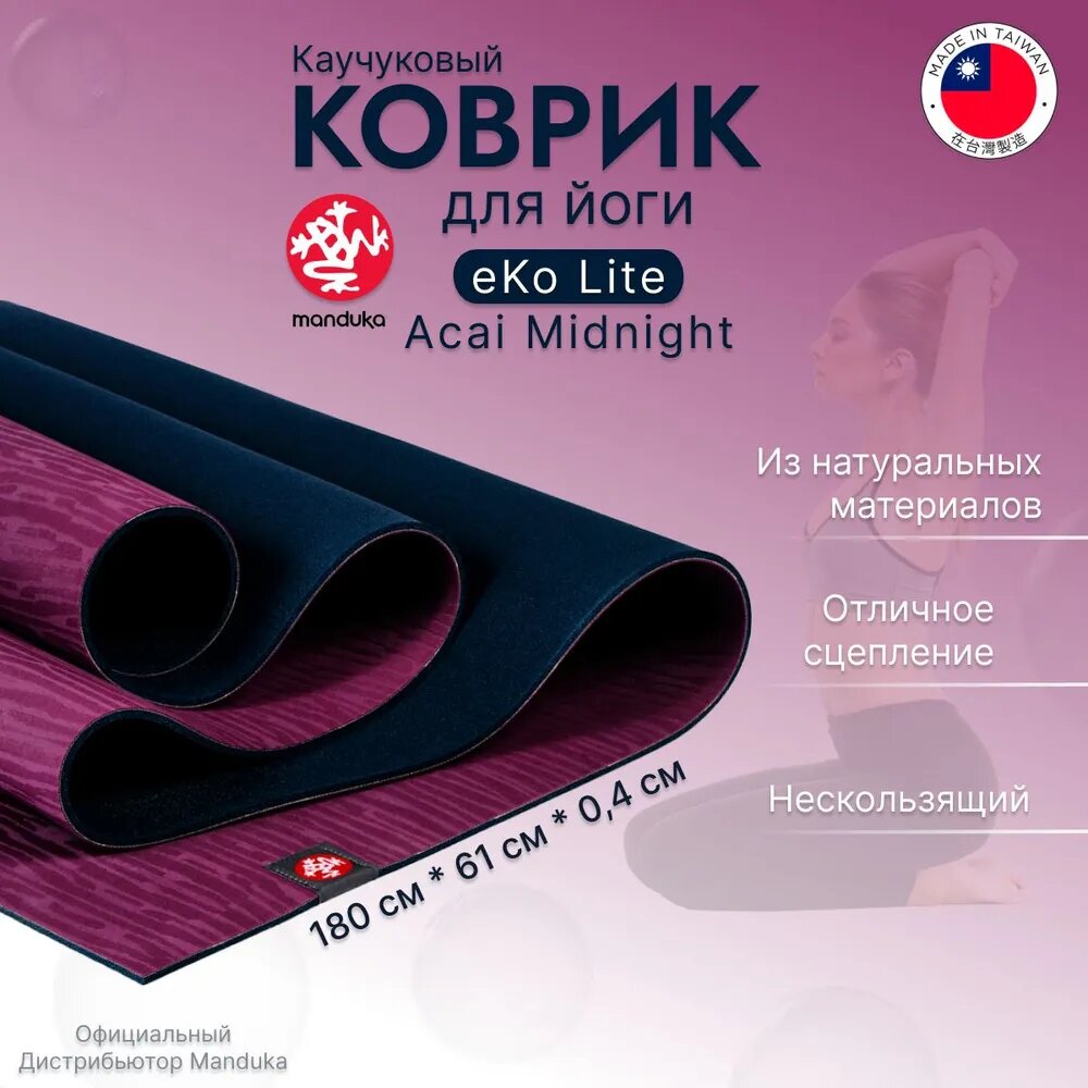 Каучуковый коврик для йоги Manduka eKO lite 180*61*0,4 см - Acai Midnight