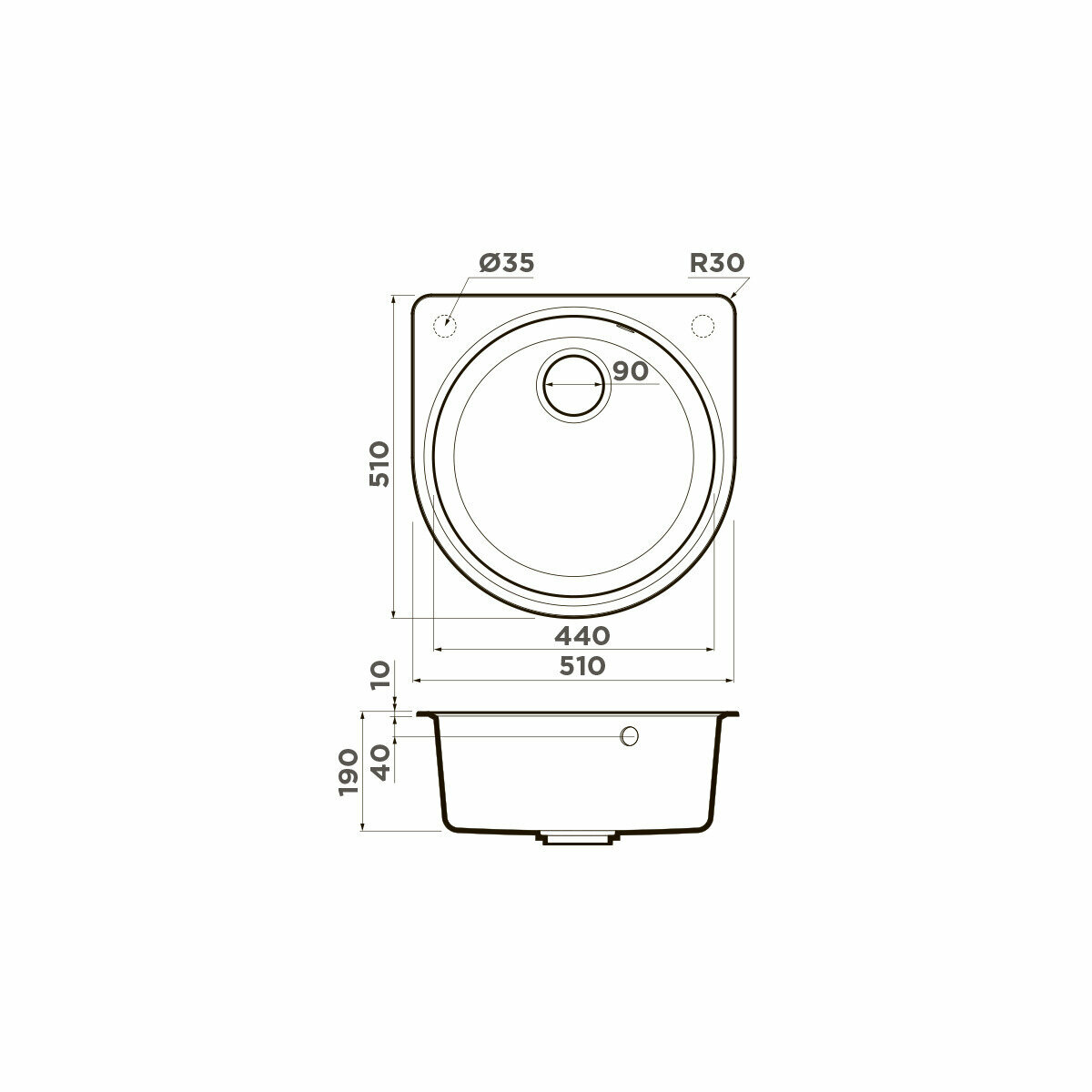 Кухонная мойка OMOIKIRI Akegata 51-BL, искусственный гранит/круглая/черный