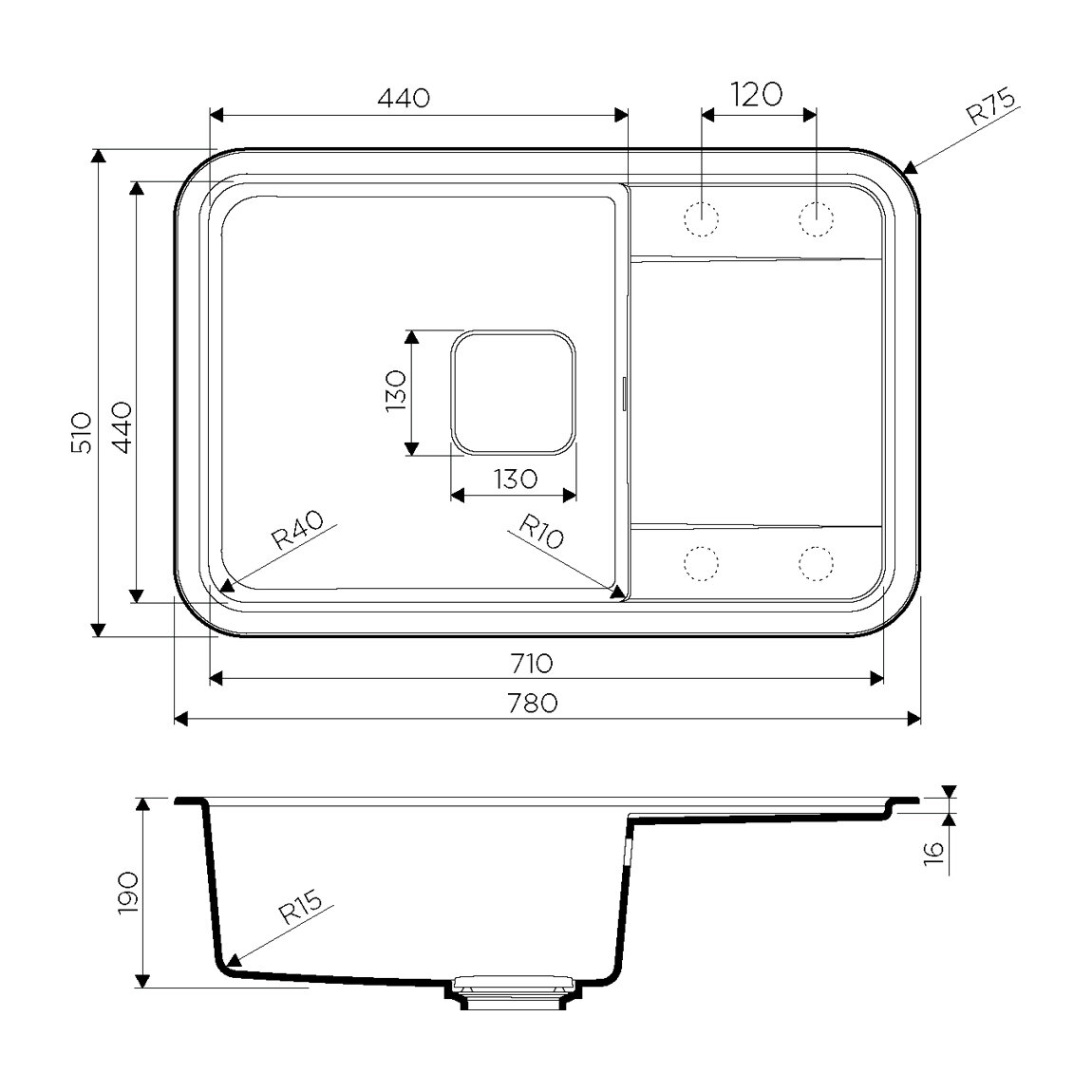 Кухонная мойка OMOIKIRI Tasogare 78-BL 78х51см искусственный гранит/черный