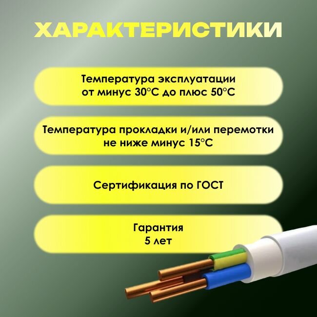 Кабель NYM 3х2,5 (N,PE) - 10 м. ГОСТ Конкорд