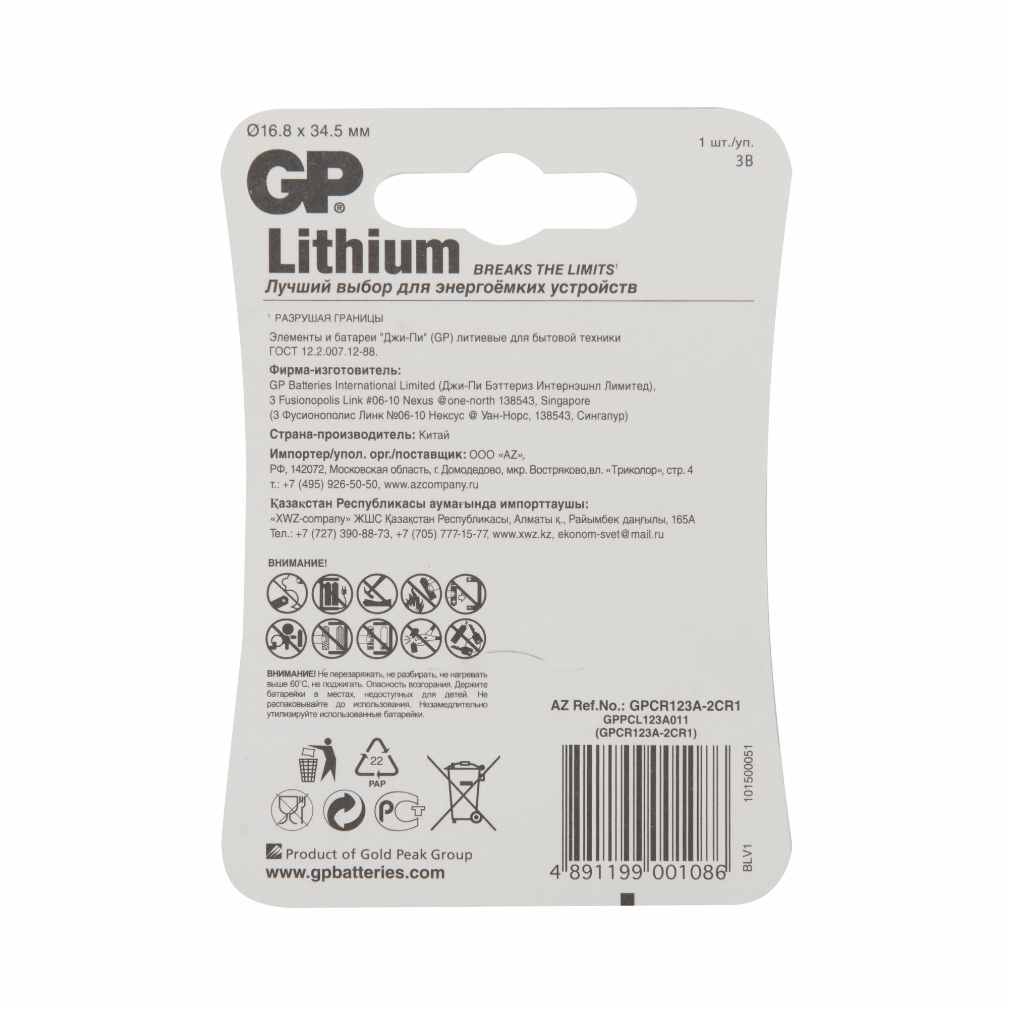 Купить Батарейка GP Lithium CR123A, в упаковке: 1 шт.