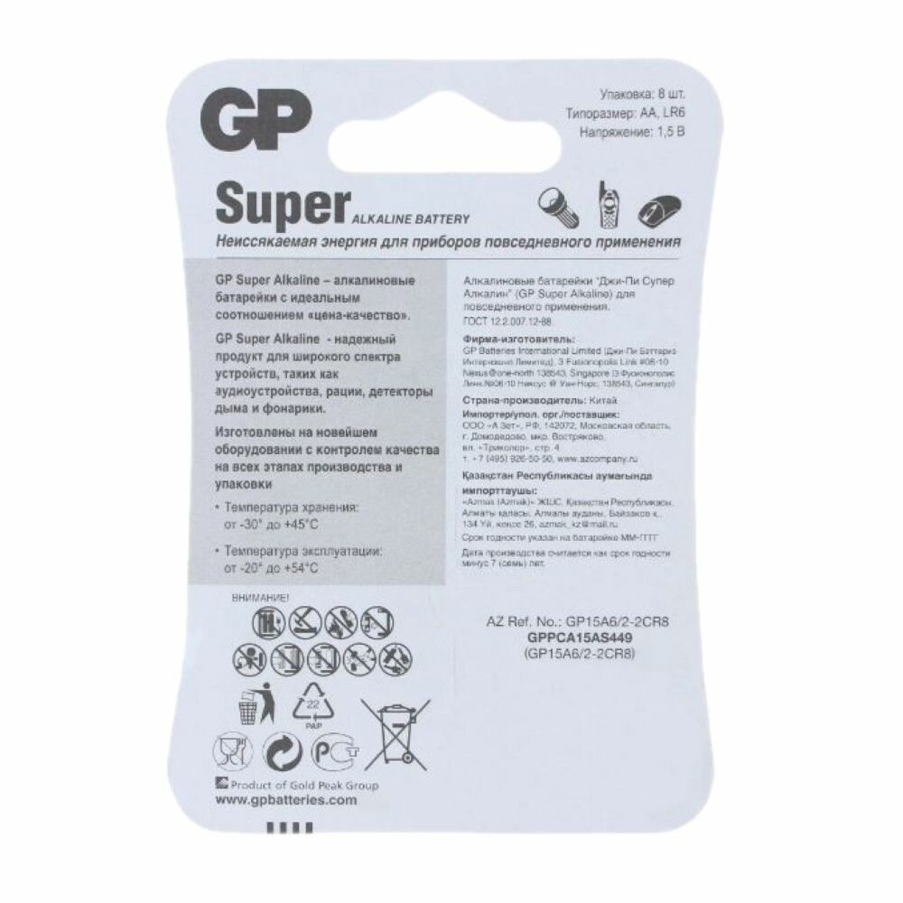 Купить Батарейка GP Batteries Super Alkaline АА (LR06) алкалиновая , 8 шт