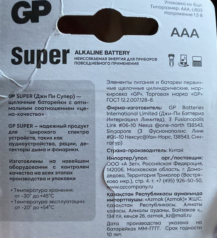 | Плюсы: | Это действительно батарейки GP Super Alkaline AA |