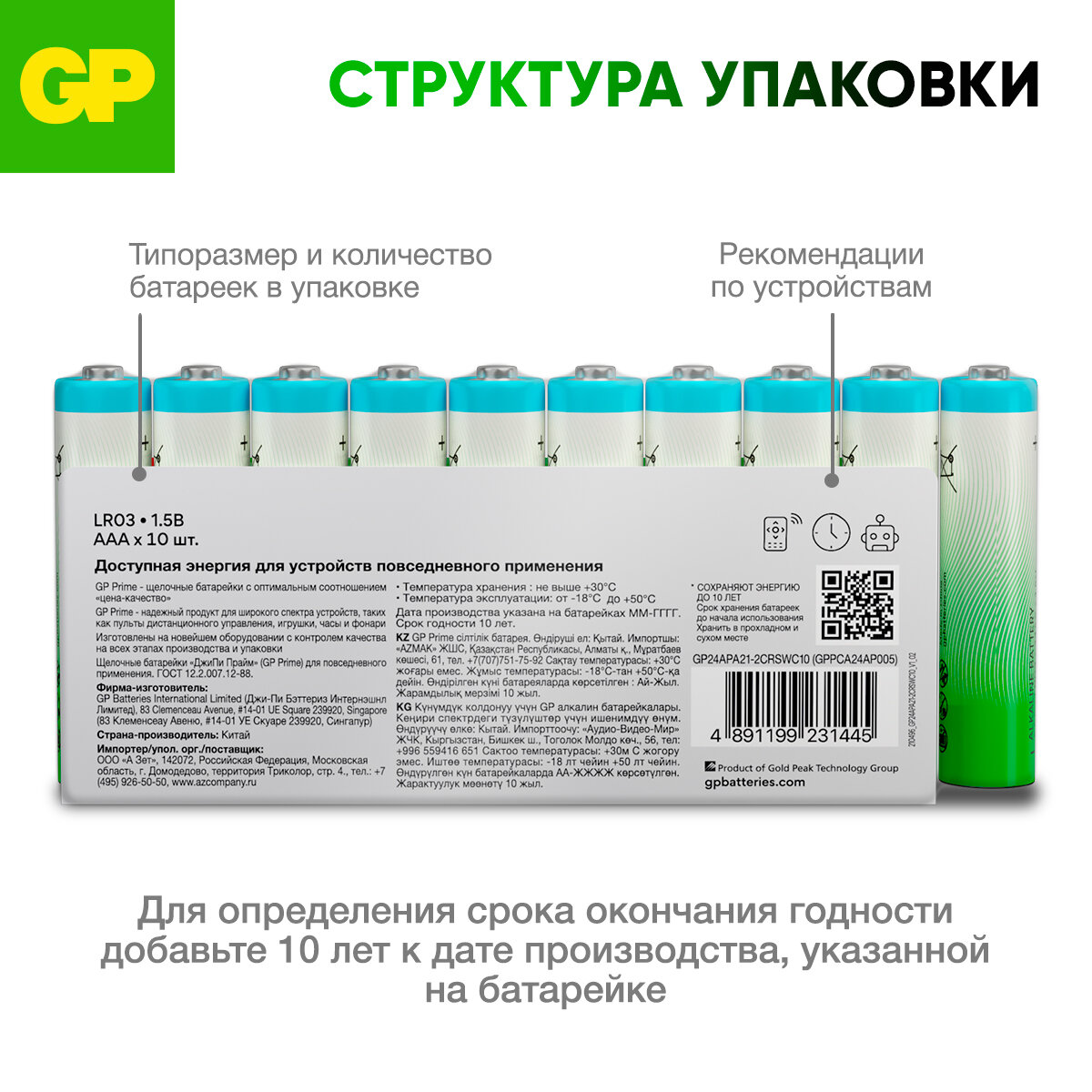 Батарейка GP Batteries AAA мизинчиковая LR03 1,5 В (10 шт.)