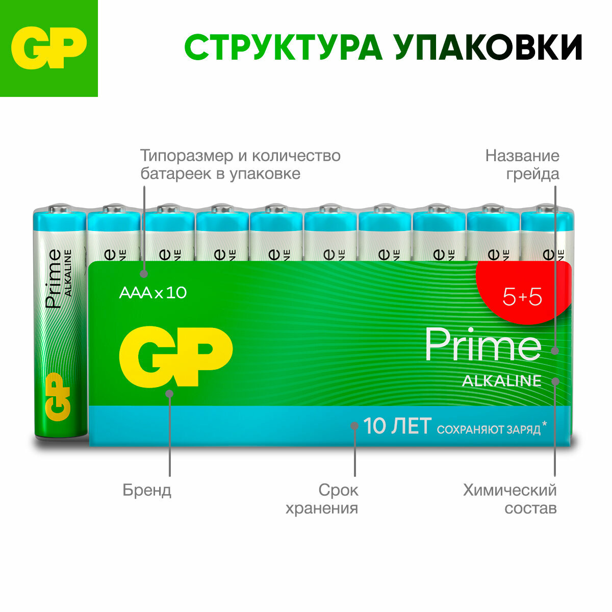 GP Батарейки ААА мизинчиковые алкалиновые Prime Alkaline, набор 20 шт