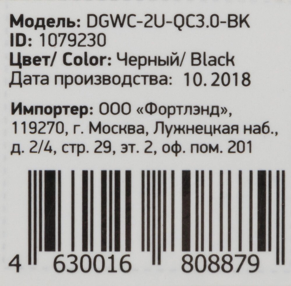 Зарядное устройство Digma DGWC-2U-QC3.0-BK
