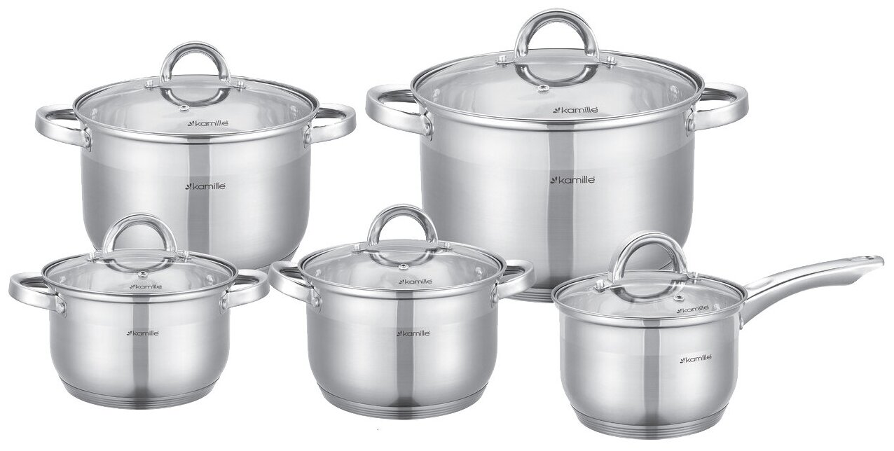 Набор посуды 10 предметов из нержавеющей стали Kamille КМ-5633S (ковш 1,8 л; кастрюли 1,8 л; 2,5 л; 3,8 л; 5,8 л)