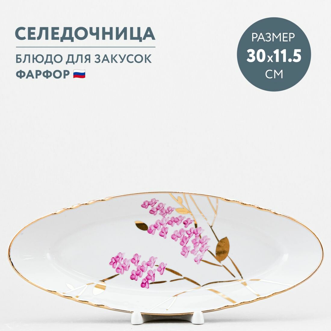Блюдо сервировочное овальное 30 х 11.5 см селедочница Дулевский фарфор Розовая ветка интересное: