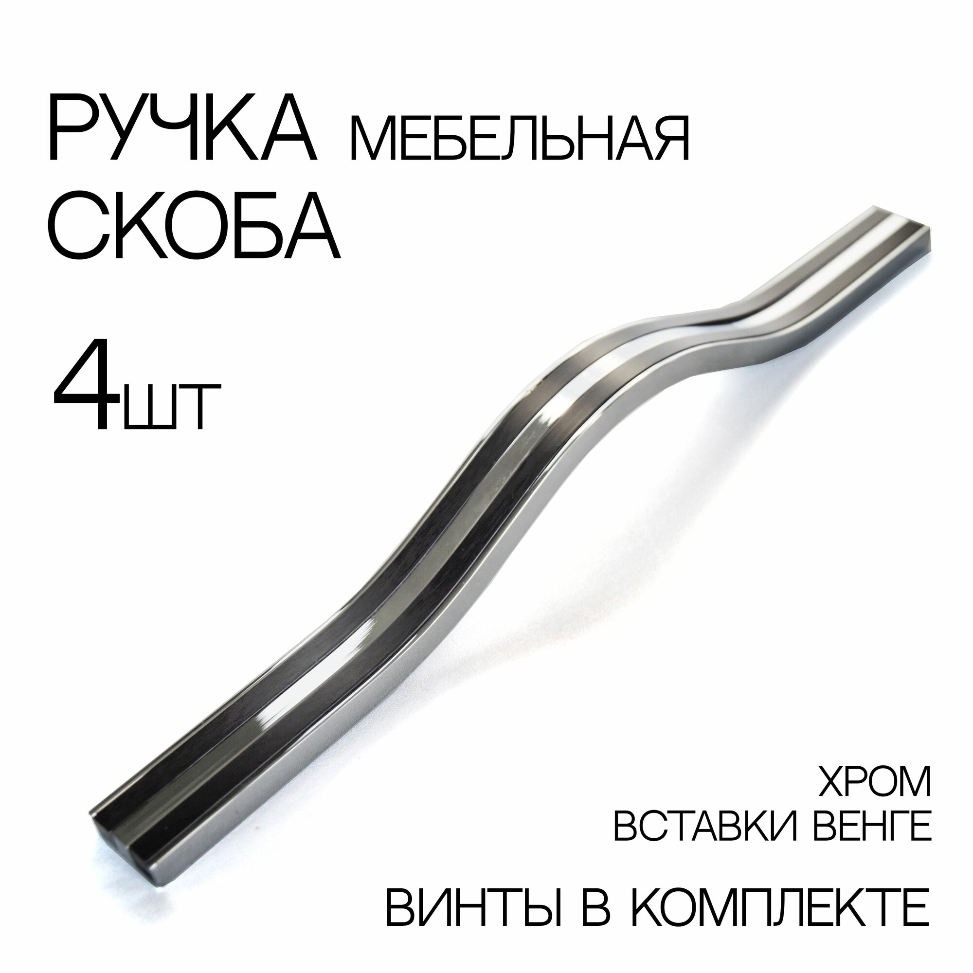 Купить Мебельная ручка, на 320 мм , 4 шт., цвет венге/хром глянец