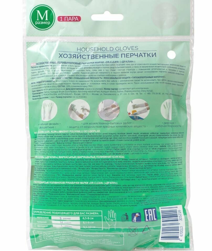 СохранитьDr. Clean Хозяйственные поливиниловые перчатки - Размер M интересное:
