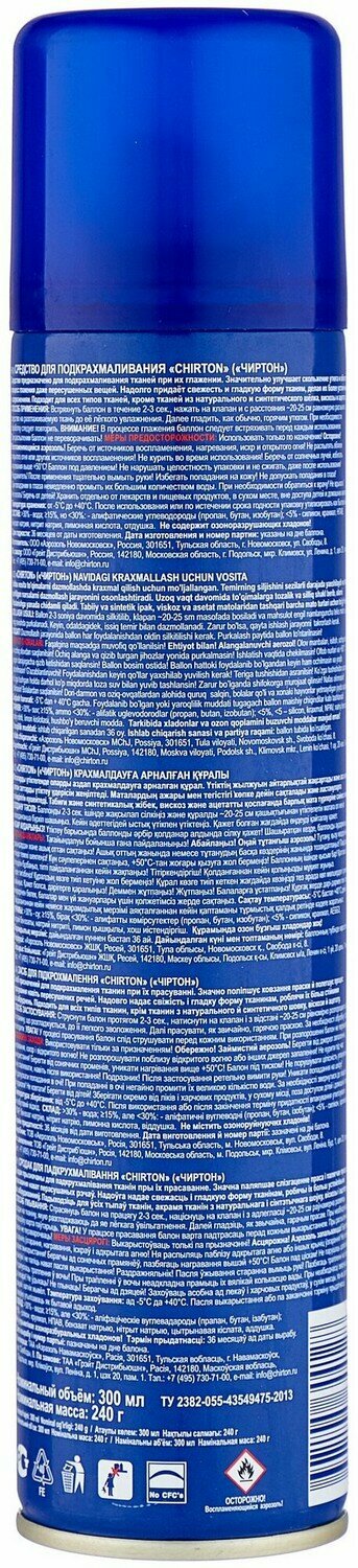 Chirton Крахмал спрей для одежды для улучшения скольжения утюга по ткани, 300 мл