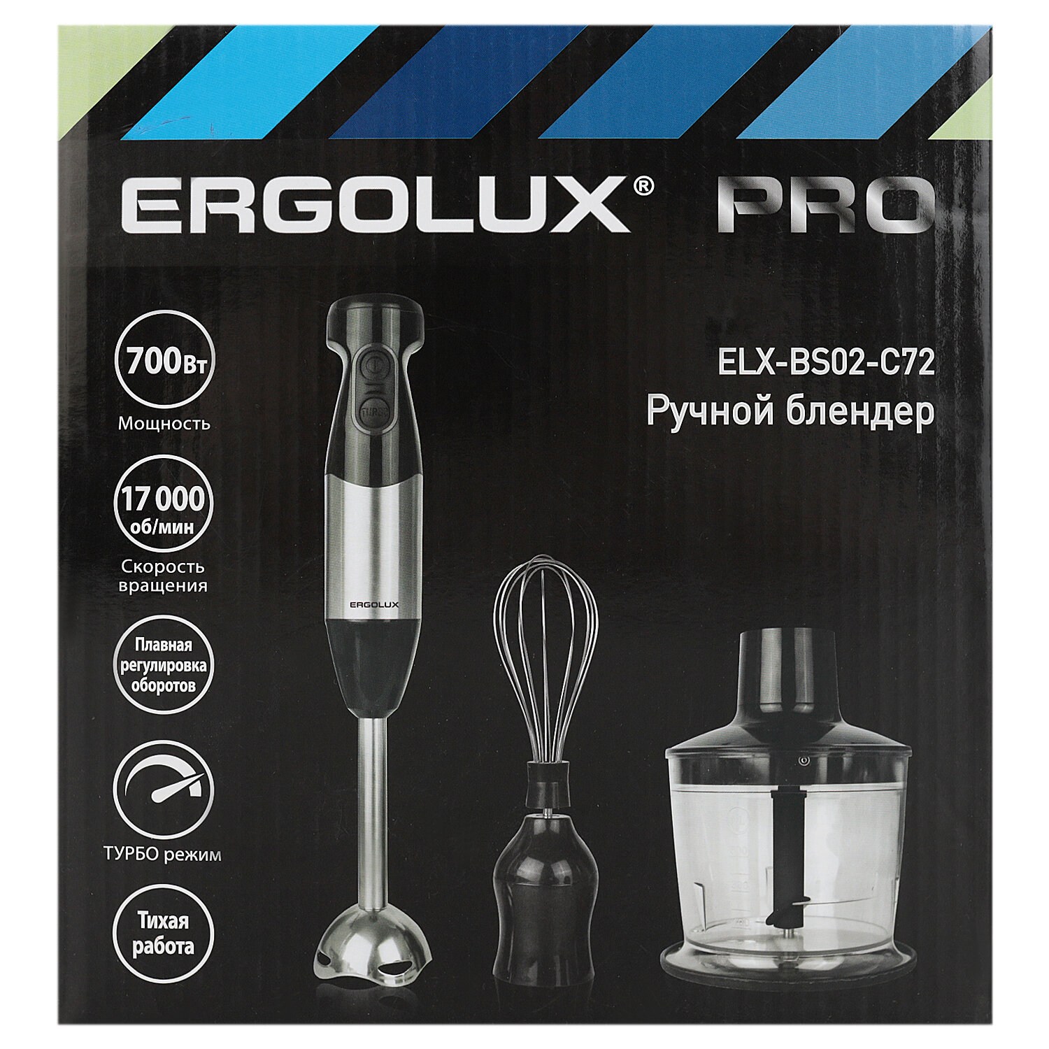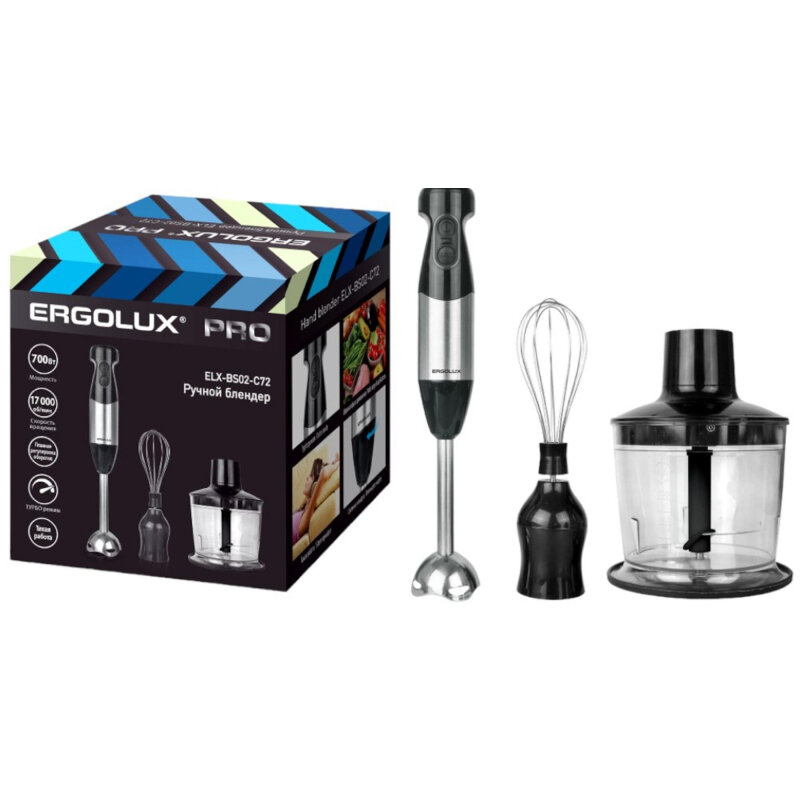 серебристо-черн (блендерный набор:измельчитель,венчик, блендер.700Вт,220-240В), ERGOLUX ELX-BS02-C72 (1 шт.)