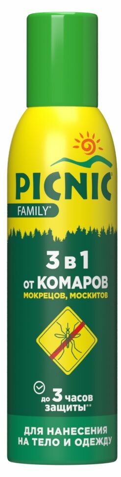 Аэрозоль "Picnic Family" от комаров, мокрецов, москитов, 150 мл./В упаковке шт: 1