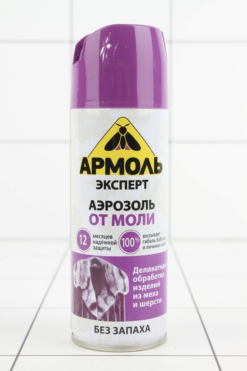 Аэрозоль Армоль Эксперт от моли без запаха, 200 г, 190 мл, белый/фиолетовый