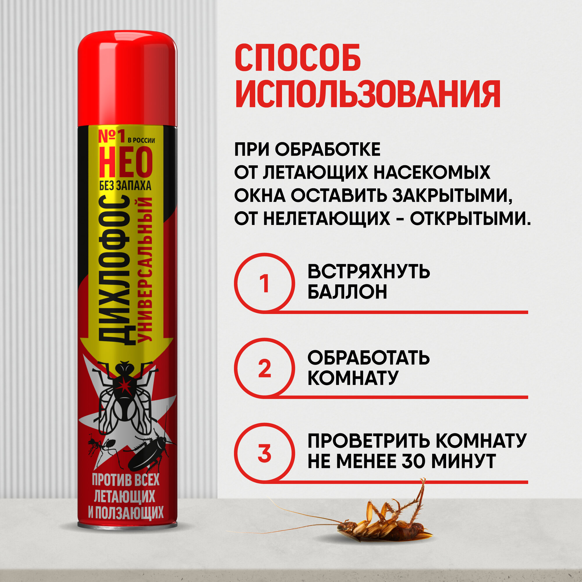 Инсектицидный аэрозоль Дихлофос Нео, универсальный, без запаха, 190 мл