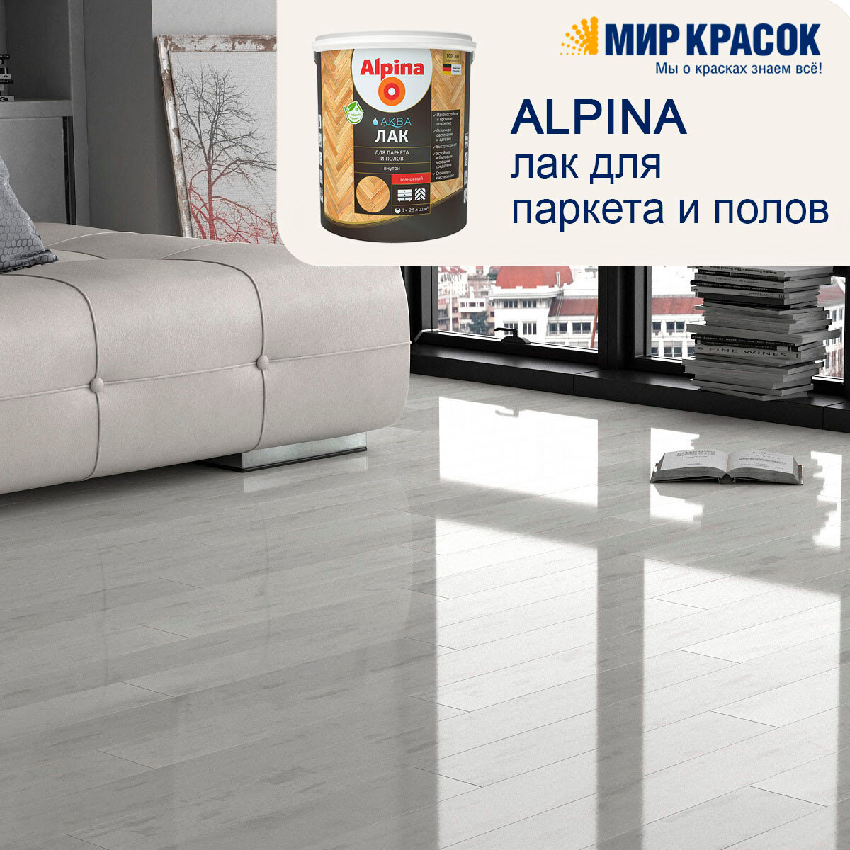 Alpina Аква лак для паркета и полов, акриловай лак