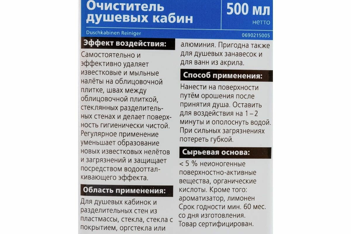 Загрязнения после долгих поисков на стеклах душевого ограждения (Ravak) существенные. Стоят магистральные фильтры, но отложения извести за 6 месяцев поиска средства существенные. Первое использование - работает, но осталось процентов 15 - 20. Душевое ограждение. Техника использования стандартная. без каких либо усилий. Нанес на стекла, распределил равномерно по поверхности с помощью губки или тряпочки и оставила на 3 - 5 минут. Потом просто смыл водой. Второе применение, все тоже самое, но оставил на пару минут. смыл водой нос применением специальной тряпочки ("варежка" с ворсом типа аналог какого то там волоса). Впарили такую тряпочку лет 10 назад за 100 баксов, но не жалею, работает даже без средств. Остатка извести на стеклах не наблюдаю. После 3-х дней полет нормальный, вода скатывается с поверхности. Удивил дополнительный эффект защиты, капли на стекле почти не остаются, даже не стал наносить кондиционер. Посмотрим еще пару месяцев, отпишусь. Использовал аналоги. Ravak, эффект значительно хуже и стоит примерно в 2 раза дороже. Второе ср-во Cramer, немцы, работает лучше, стоит примерно как и Ravak. Данный производитель к сожалению "спекся" в России, сайт вроде как живой но заказать не могу. У этой марки вся линейка хорошая, в том числе и по акрилу, но теперь только через Amazon заказывать.... И еще момент, важно не использовать "агрессивные" средства, имеется печальный опыт... Наносим на небольшой срок, до 5 минут и потом без фанатизма, не трем сильно поверхность, это средство и так работает. Эффект может проявиться полностью после 2 - 3 применений, потом не лениться и раз в неделю поддерживать чистоту. |