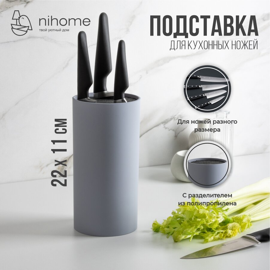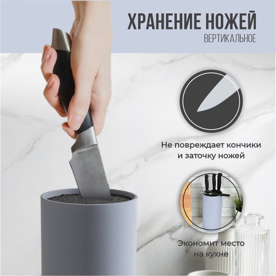 СохранитьSATOSHI Подставка для ножей с полипропиленовыми разделителями, 11х22см, круглая, 4 цвета интересное:
