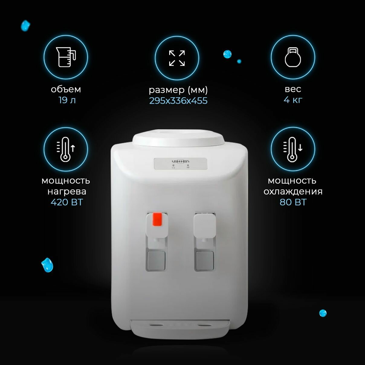 Кулер для воды VATTEN D27WE, настольный, нагрев, охлаждение электронное, 2 крана, белый (7025)