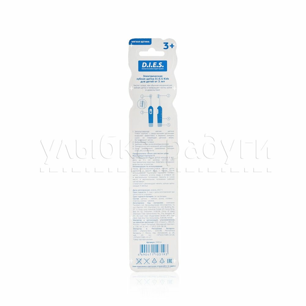 Ниже Вы можете прочитать отзывы на Детская Электрическая зубная щетка D.I.E.S. Kids " Дракон " 3+ , мягкая, ознакомится с подробными характеристиками, посмотреть интересные обзоры и фотографии на Детская Электрическая зубная щетка D.I.E.S. Kids " Дракон " 3+ , мягкая.