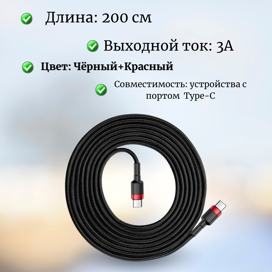 Кабель type-c 2 метра Baseus быстрая зарядка type c для телефона провод type c шнур тайп си