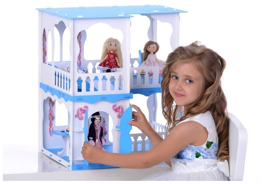 Купить Домик для кукол Krasatoys Дом Алсу для кукол бело-голубой с мебелью