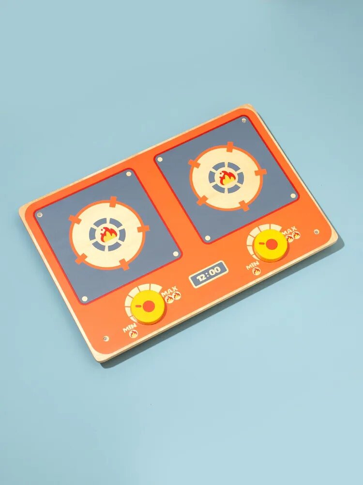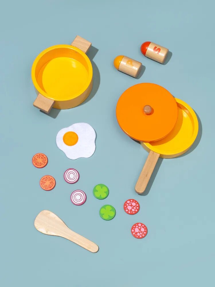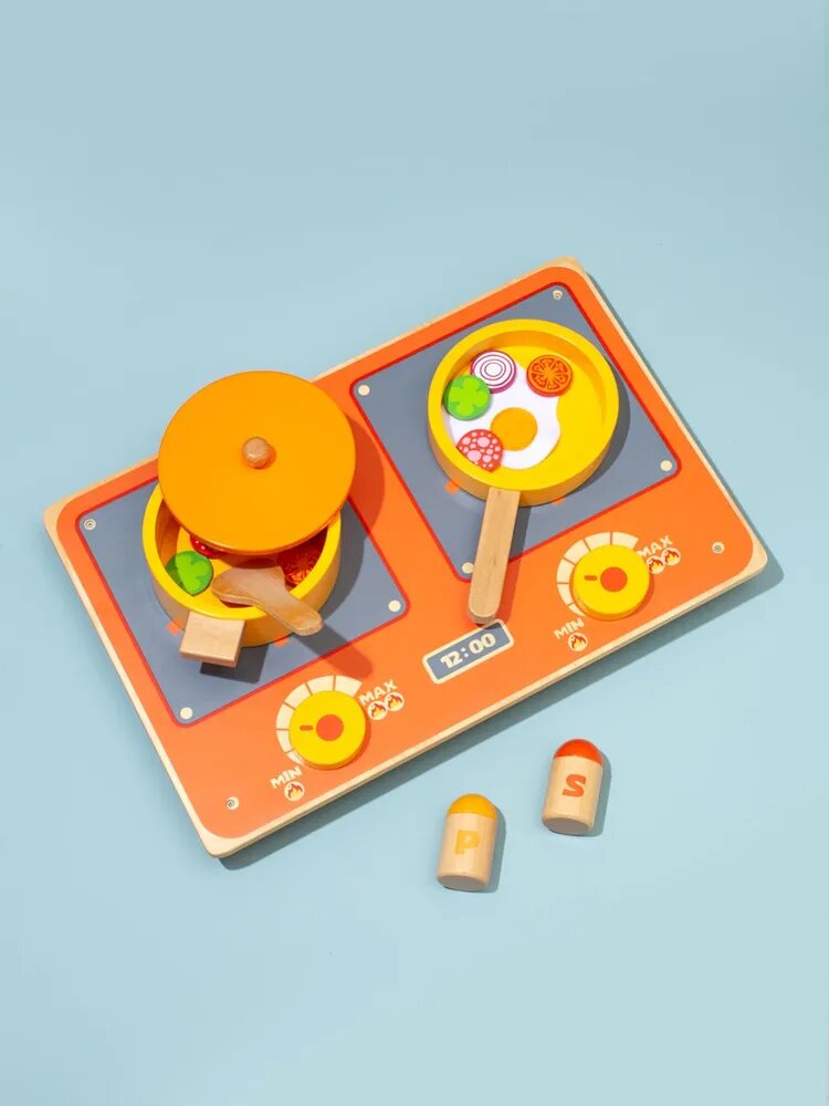 Детская кухня из дерева с посудой, кухонной утварью и плитой интересное: