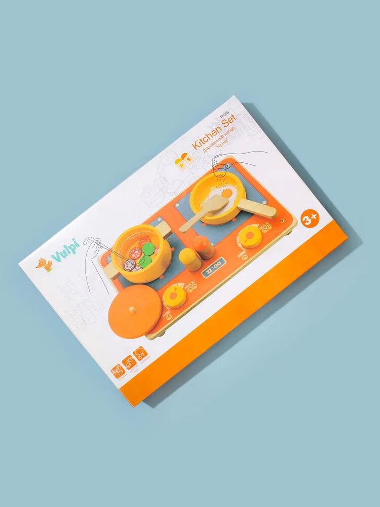 Купить Детская кухня из дерева с посудой, кухонной утварью и плитой