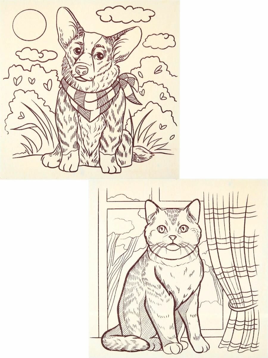 Набор для выжигания по дереву, Любимые питомцы / Доски для выжигания с рисунком