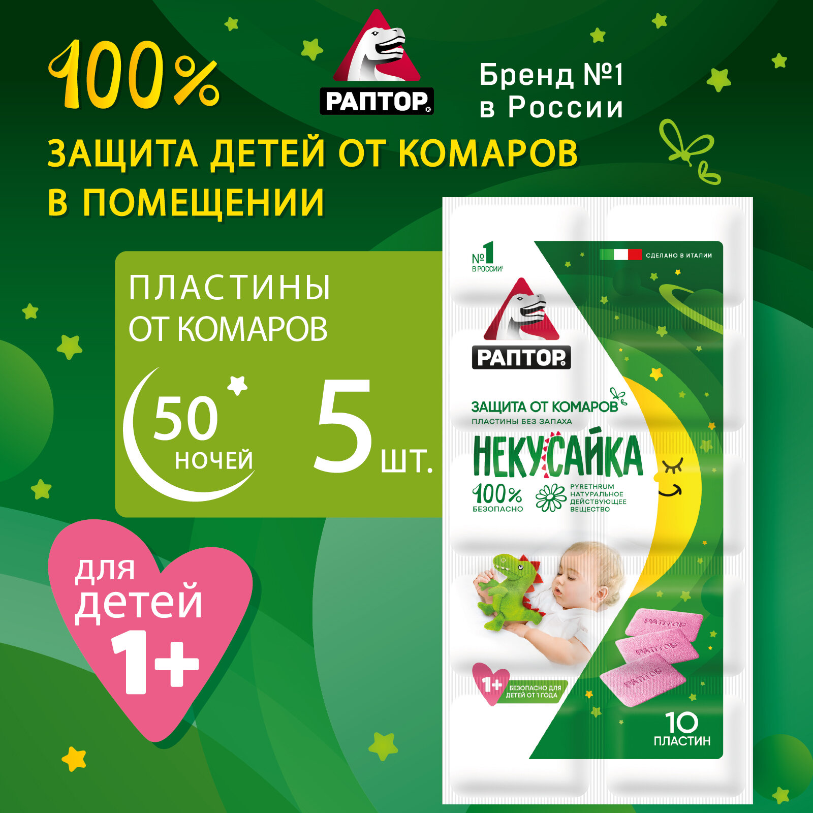 Купить Пластины от комаров Раптор Некусайка, для детей от 1 года , 5 уп. х 10 шт