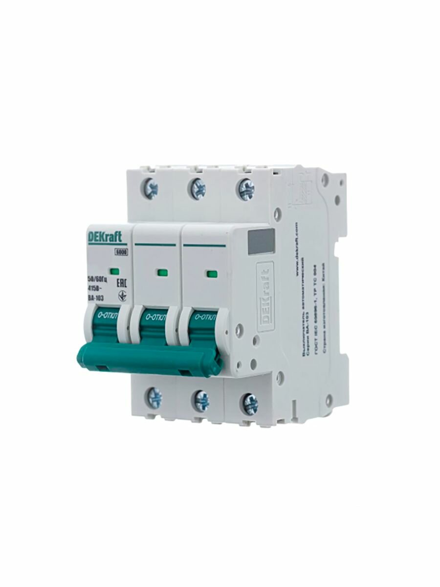Автоматический выключатель DEKraft ВА-103, 50 ампер, три полюса, характеристика C, 6 кА