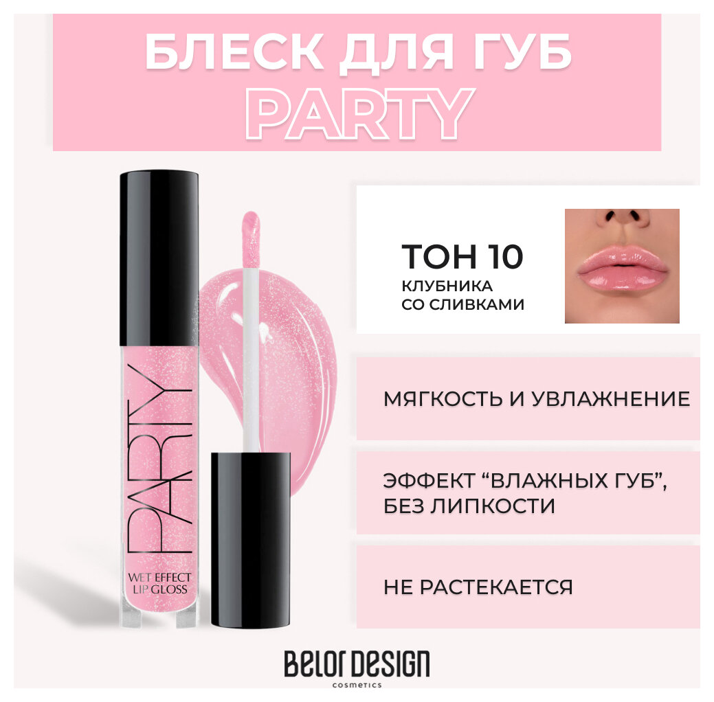 Купить BelorDesign Блеск д/губ "PARTY" тон 10 клубника со сливками