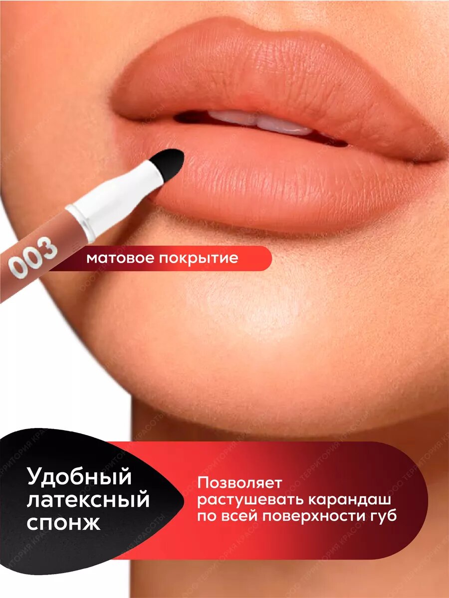| Плюсы: | Мягкий, хорошо тушуется и делает ровный контур губ |